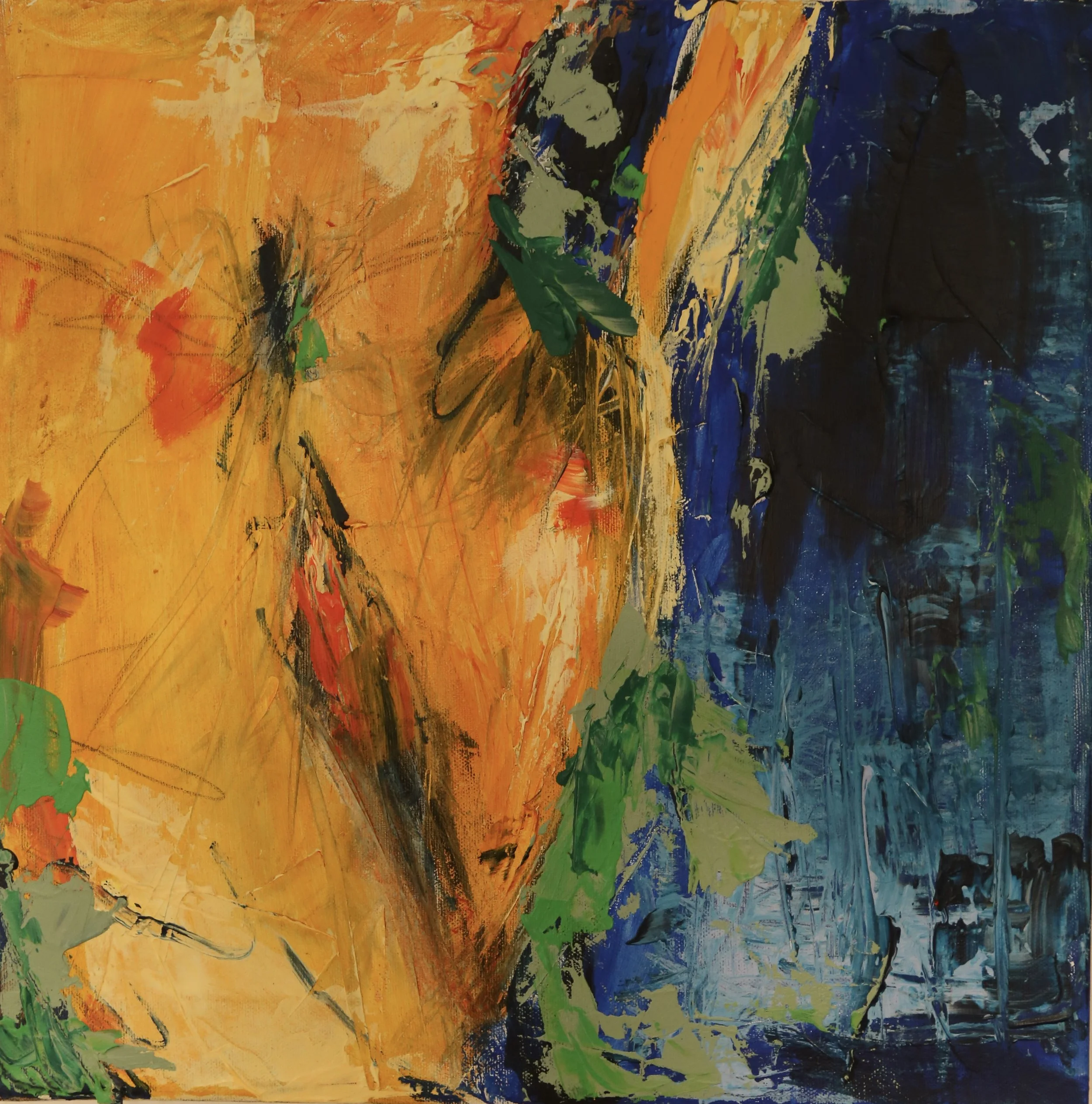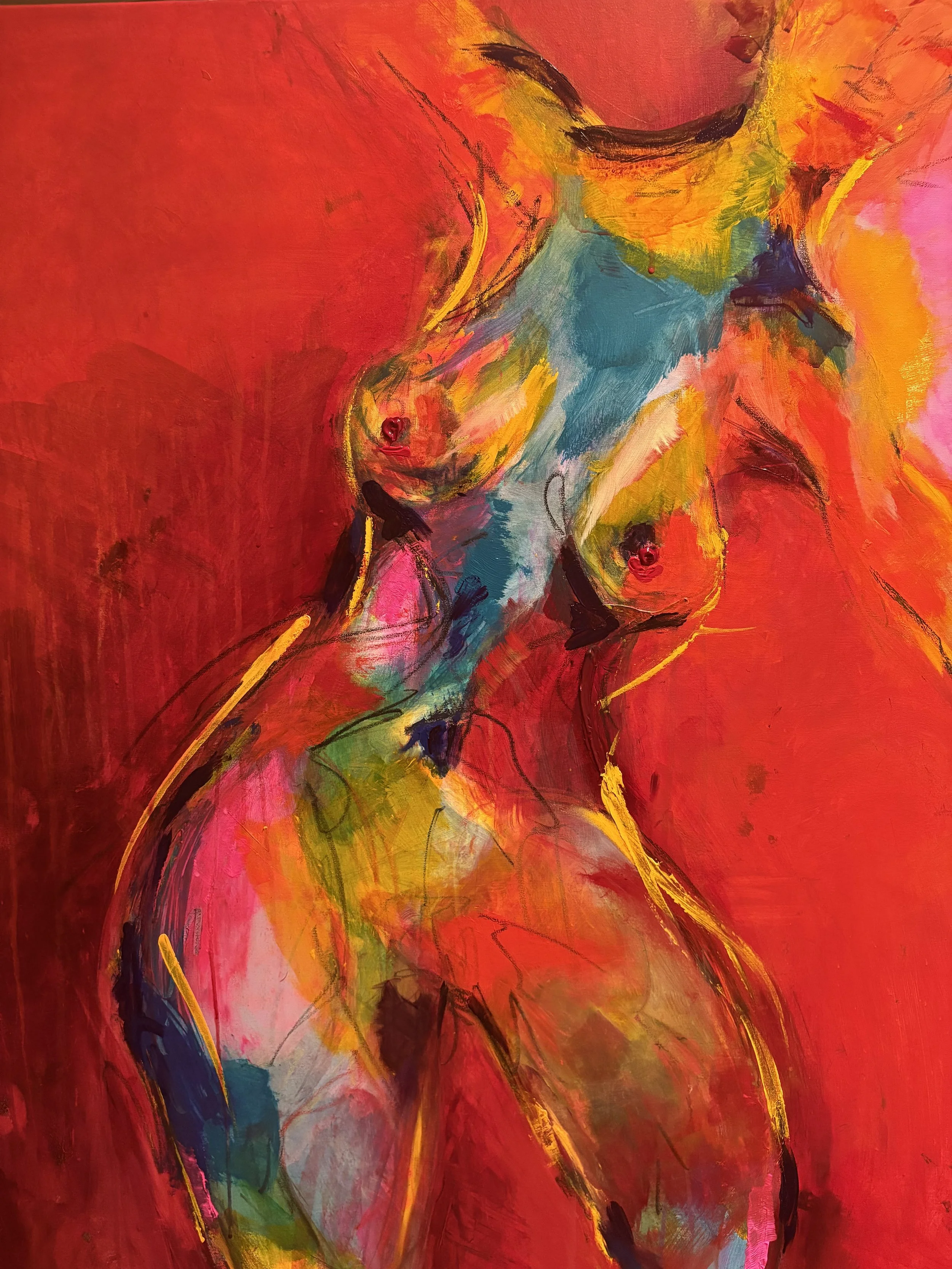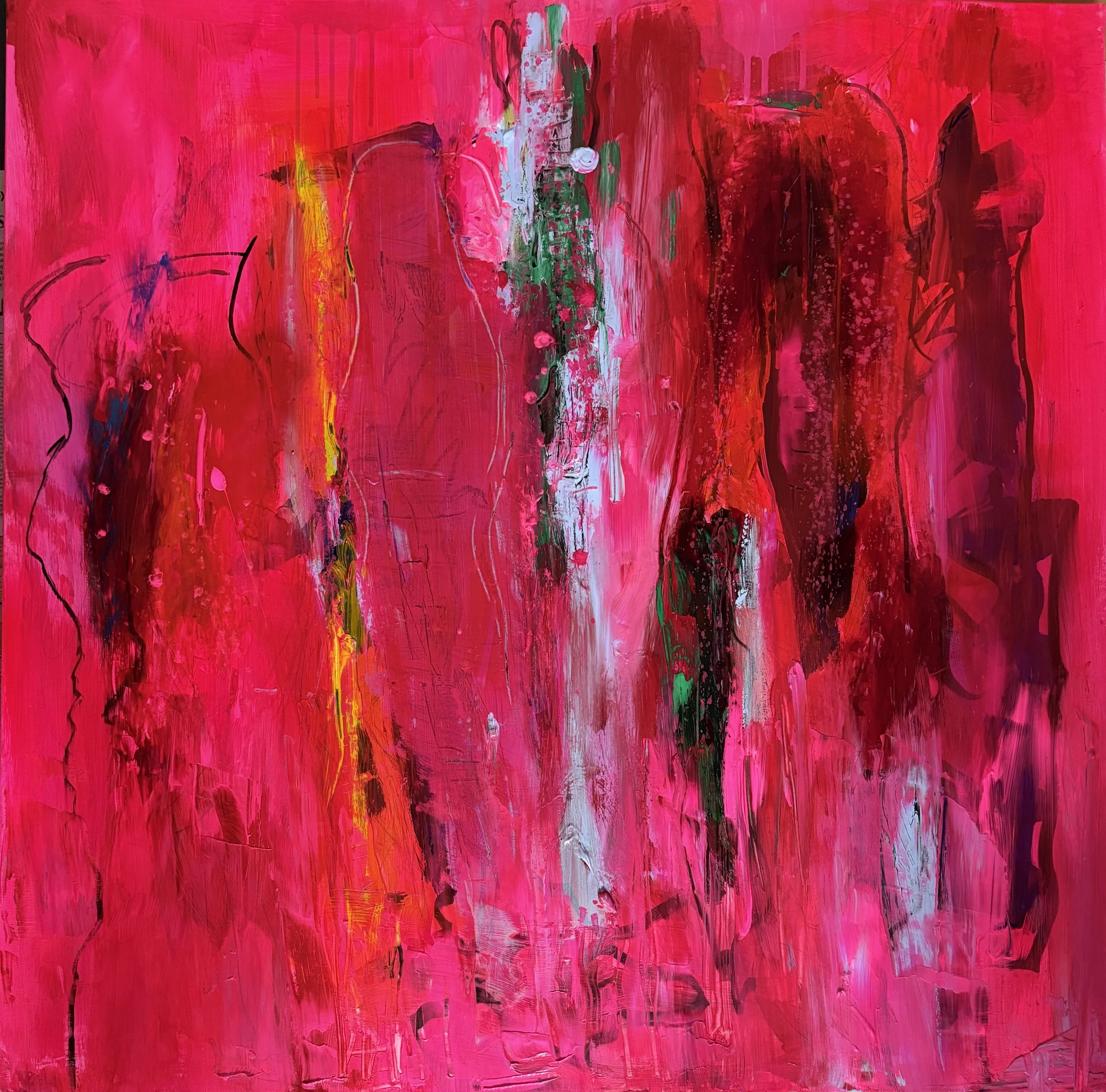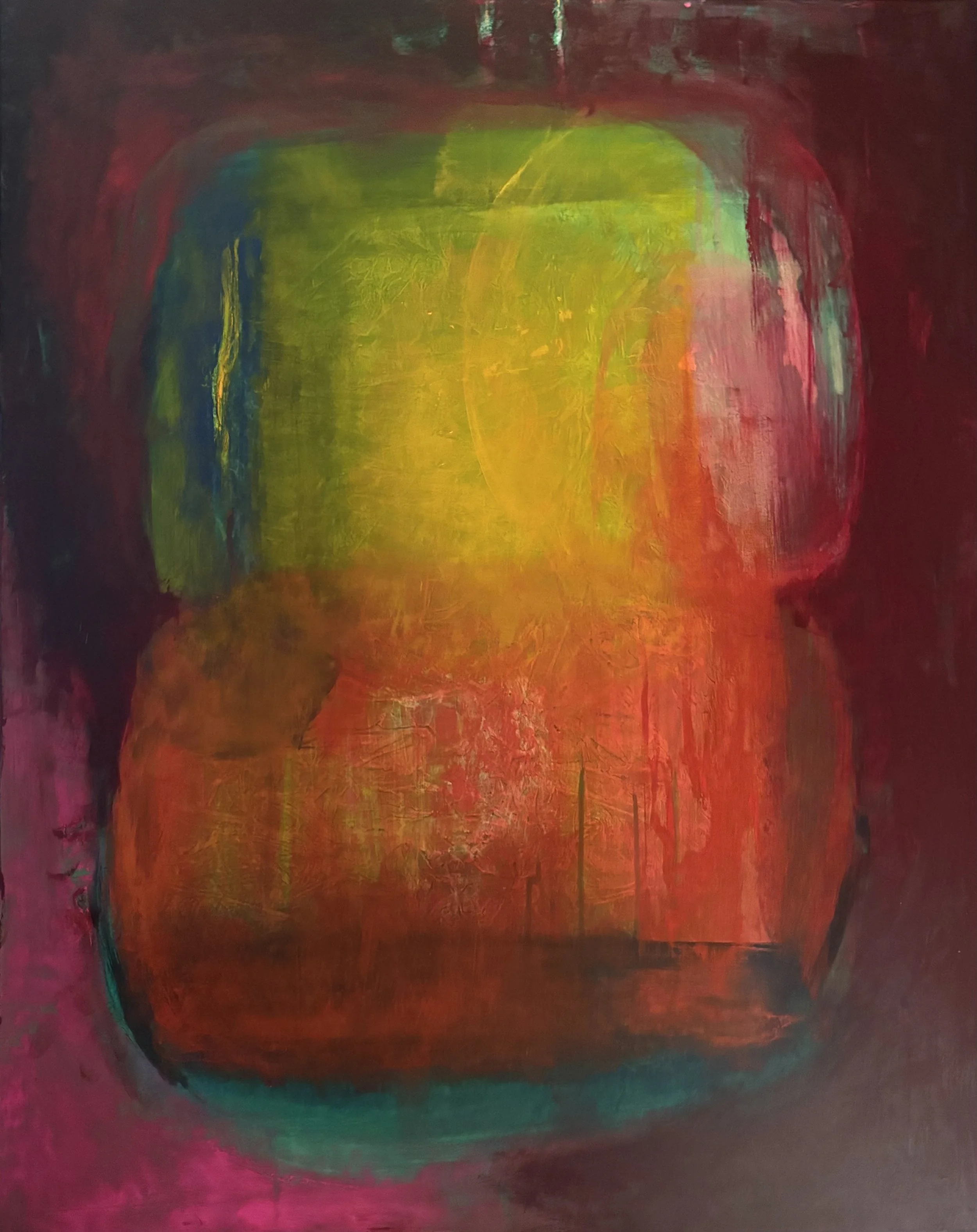 Her præsenteres et udvalg af René Jacobsens malerier – værker skabt i spændingsfeltet mellem ekspression og introspektion. Farverne bæres af en intens energi, ofte i kontrast til dybe mørke lag, hvor arketyper og psykologiske temaer træder frem.
